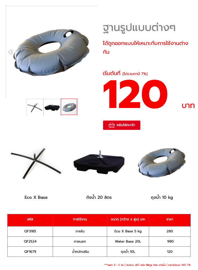 ราคาเริ่มต้นที่ 260 บาท (ไม่รวมภาษี 7%) *ไม่รวมฐาน