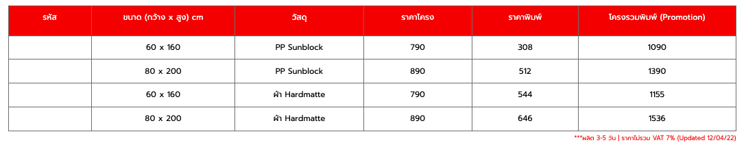 พร้อมงานพิมพ์ (ไม่รวมภาษี 7%) *ระยะเวลาผลิต 3-5 วัน