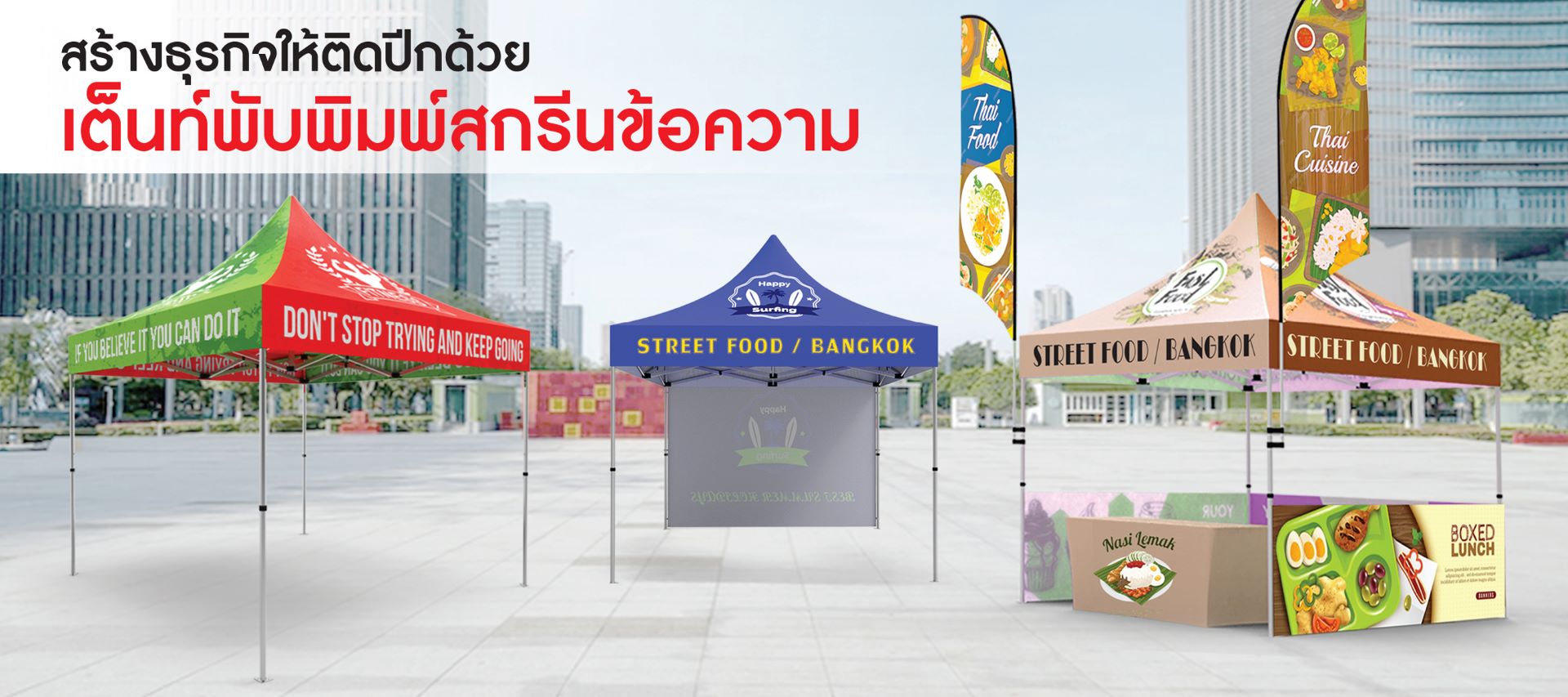 รับพิมพ์ชื่อร้านหรือข้อความลงบนเต็นท์ เพียง 900 บาท